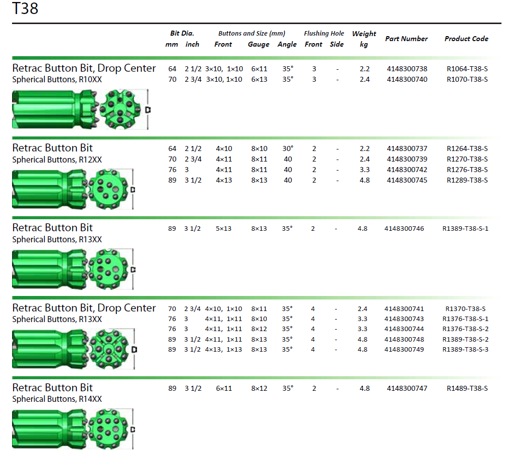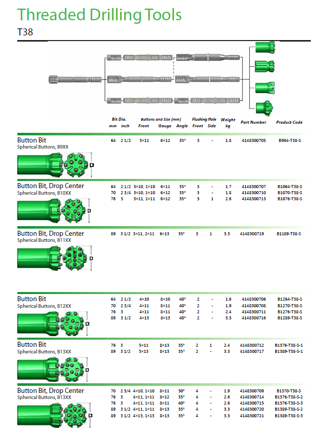 Type : T38-64mm, T38-76mm, T38-89mm, T38 102mm