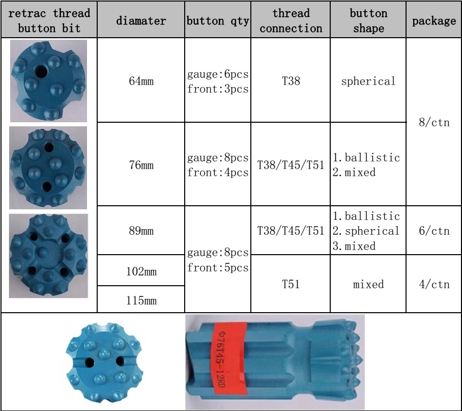 Product Name | Retrac magnetic drill bits | Thread button bit |